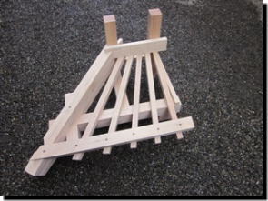 競技は2日間10〜12時間程度で、課題図に示された複雑な形状の小屋組みの一部を製作し、